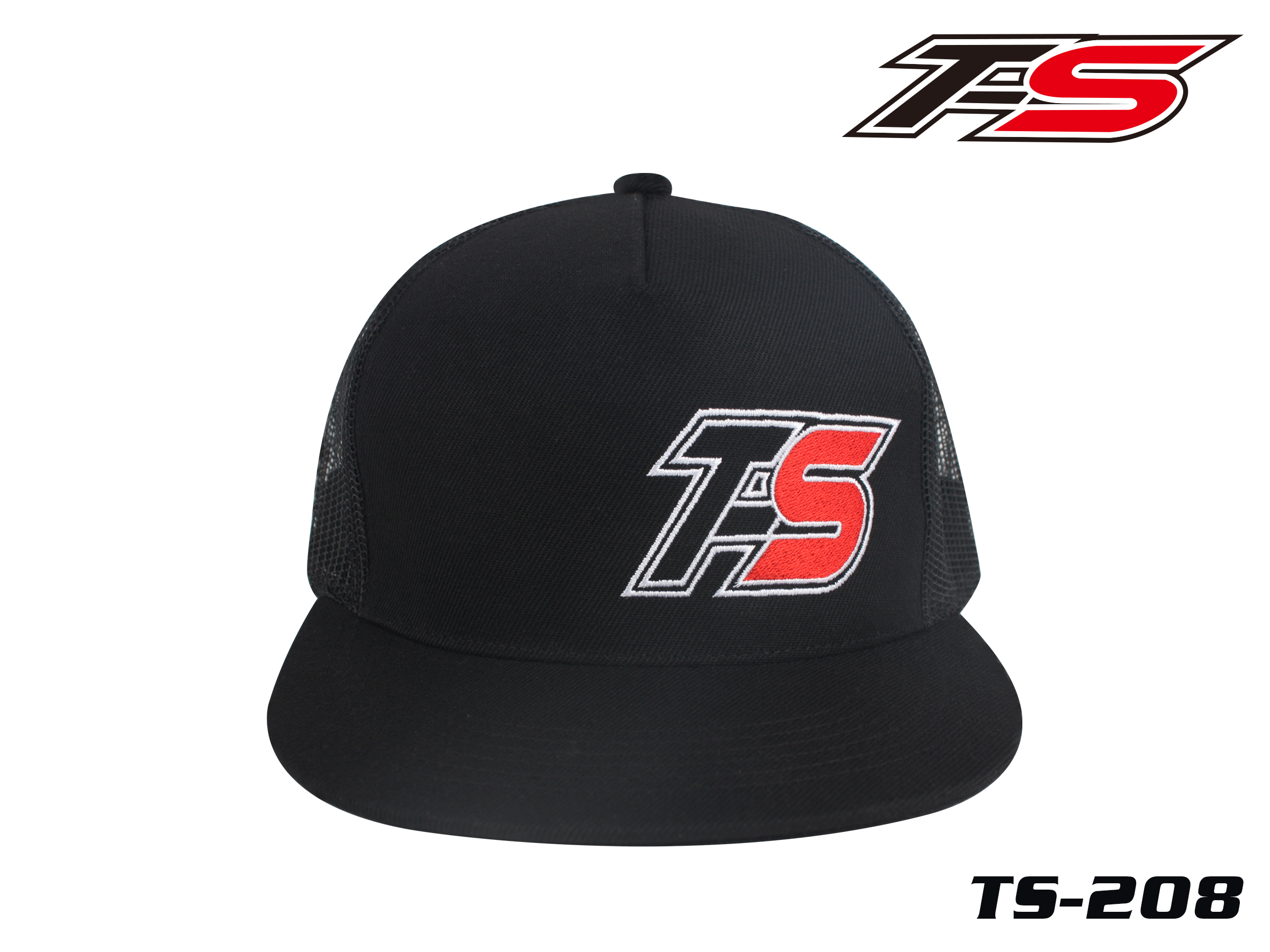 This is a new Flat Cap, the black front hosts the T-SAXO embroidered logo, back mesh design facilitates perspiration and snapback cap allows for easy size-adjustment.
